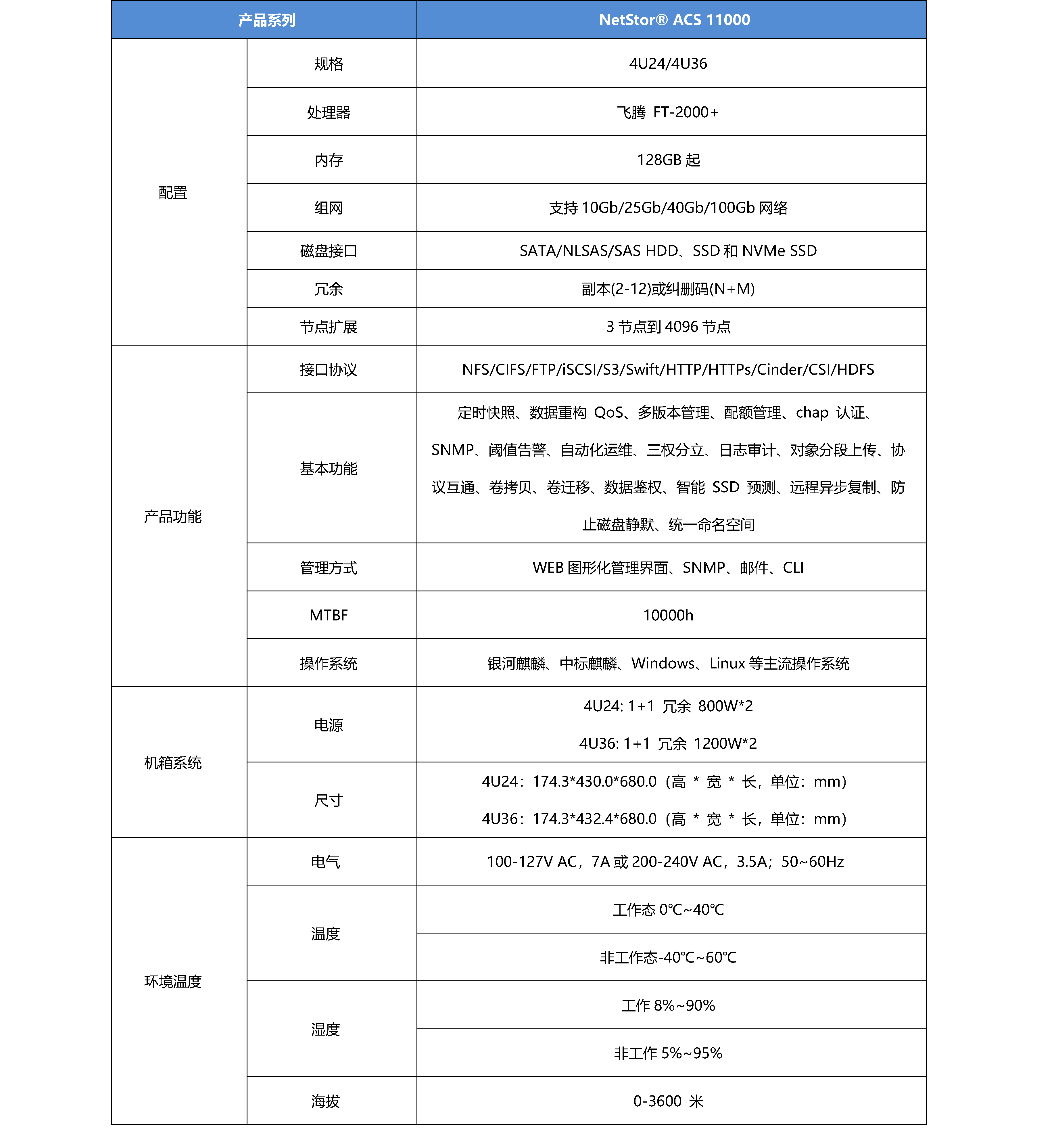 NetStor ACS11000 可滿足海量非結(jié)構(gòu)化文件、大數(shù)據(jù)分析、云虛擬化等應(yīng)用場景下海量數(shù)據(jù)安全存儲的需求,適用于政府機關(guān)、煙草云、警務(wù)云、運營商、金融信創(chuàng)、醫(yī)療、教育等行業(yè)。